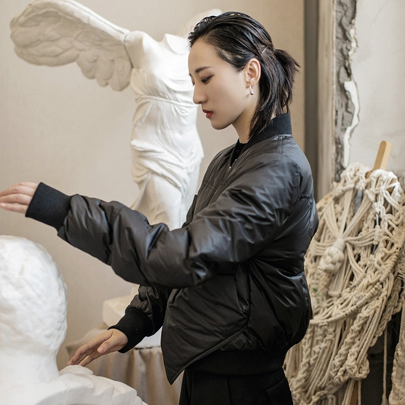 Elevate your winter wardrobe with our Asymmetrical Black Short Down Jacket, a standout piece designed for those who embrace the vibrant Harajuku fashion scene. This unique jacket blends vintage-inspired aesthetics with modern streetwear, making it perfect for fashion-forward women.
