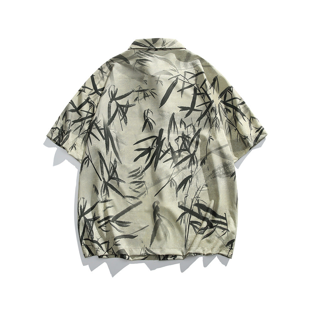 Celebrate your love for unique street fashion with this essential addition to your wardrobe. The Bamboo Leaf Printed Loose Fitting Shirt is a true representation of Harajuku style Japan, making it a must-have for fashion enthusiasts.