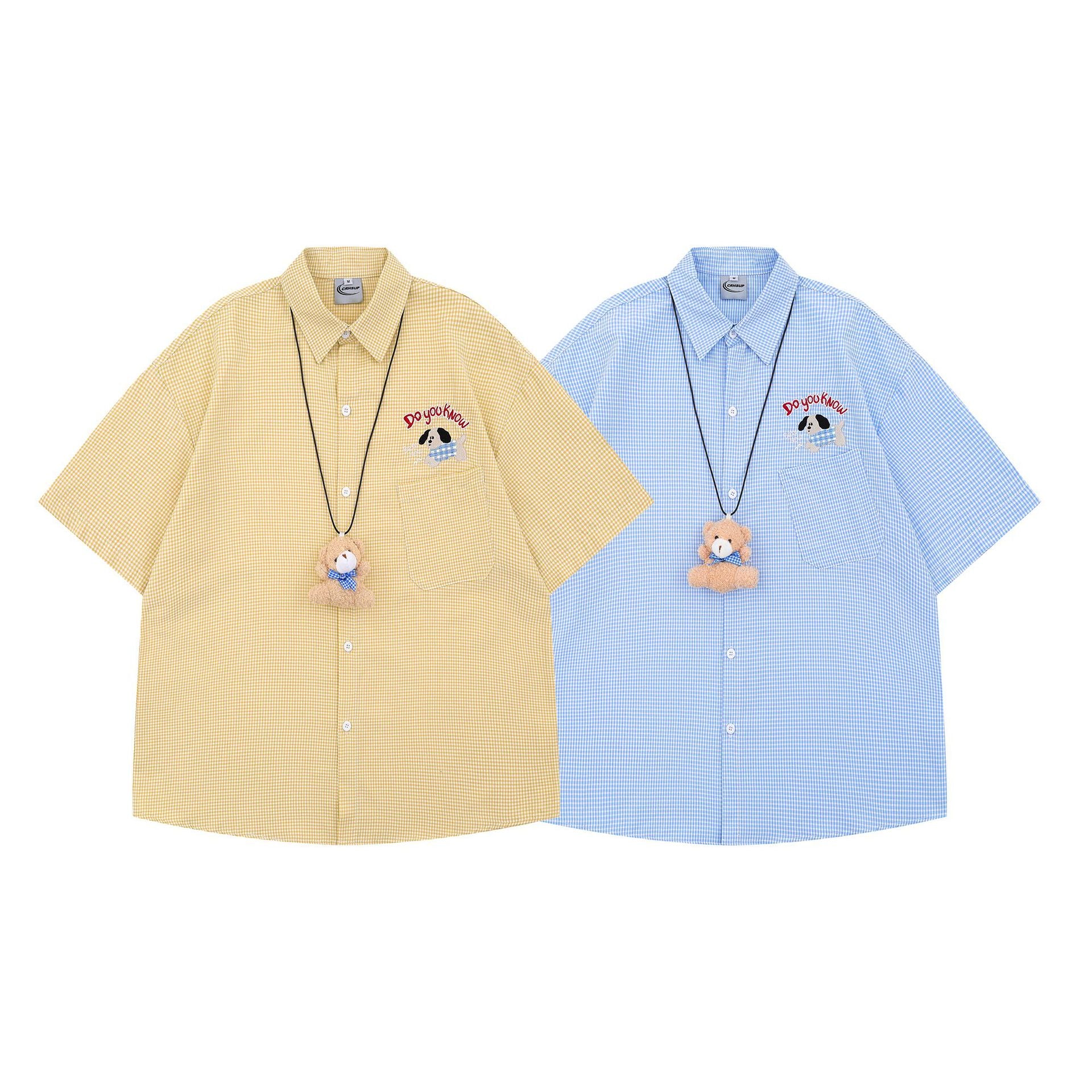 Cartoon Embroidery Short Sleeve Shirt with Bear Pendant