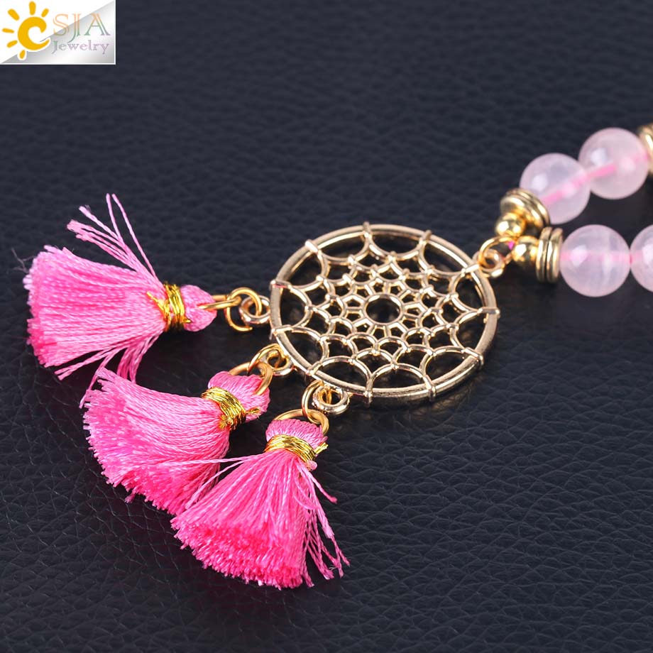 CSJA 108 Mala Beads Dreamcatcher Bracelet with Tassel Charm