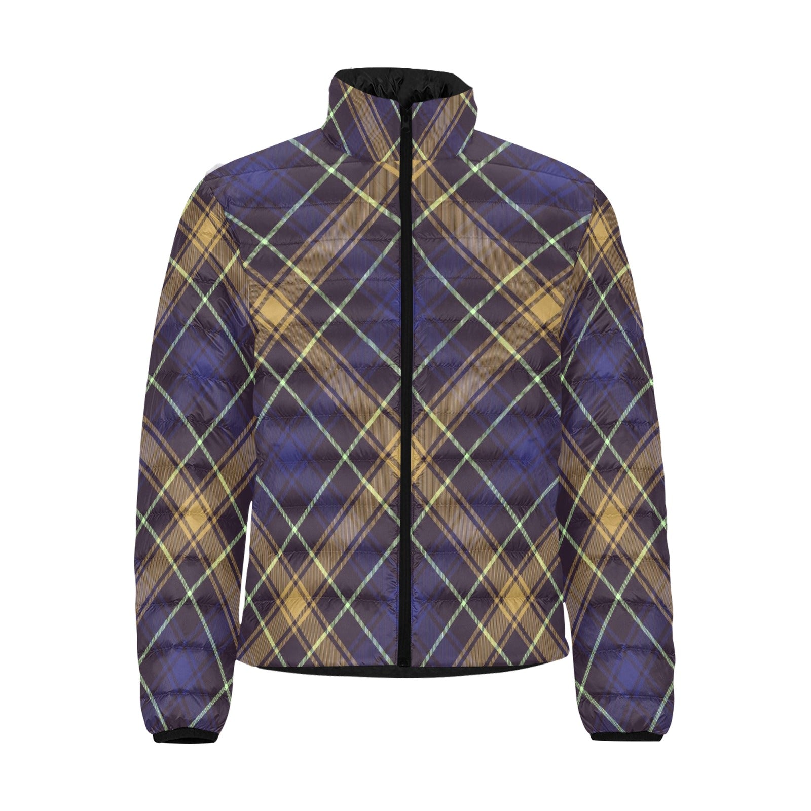 Dark Blue Plaid Men's Lightweight Bomber Jacket