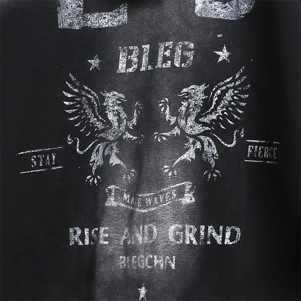 Dark Fuzzy Print Hoodie - Retro Punk Street Style