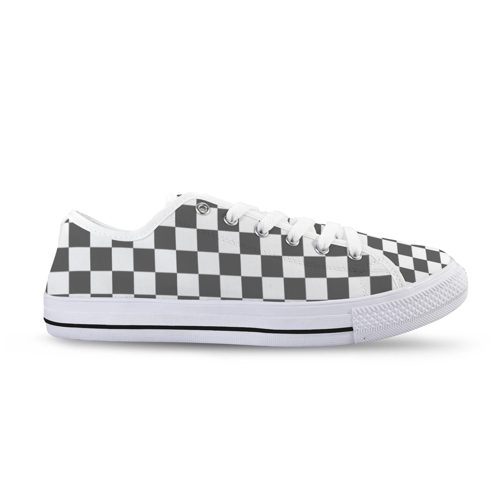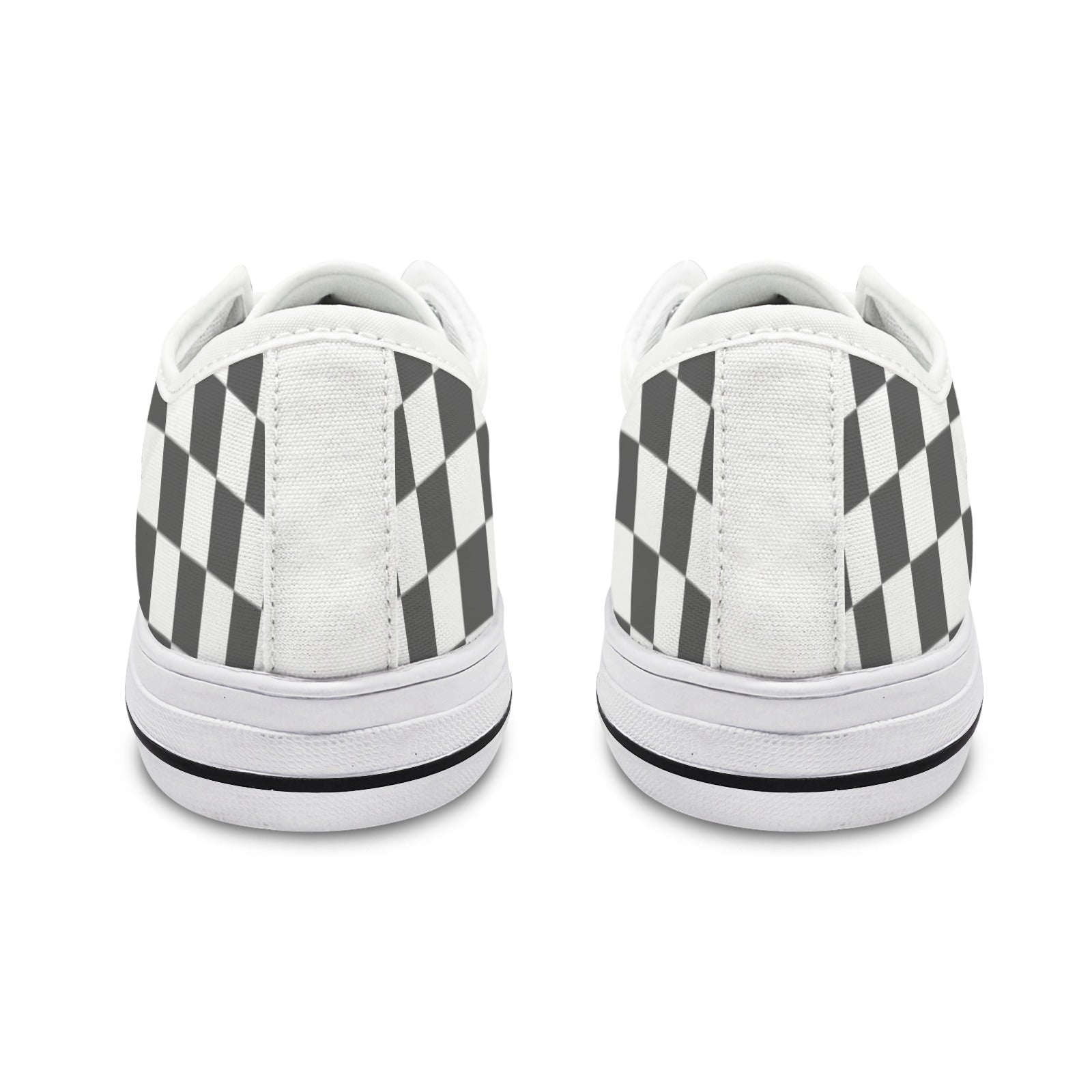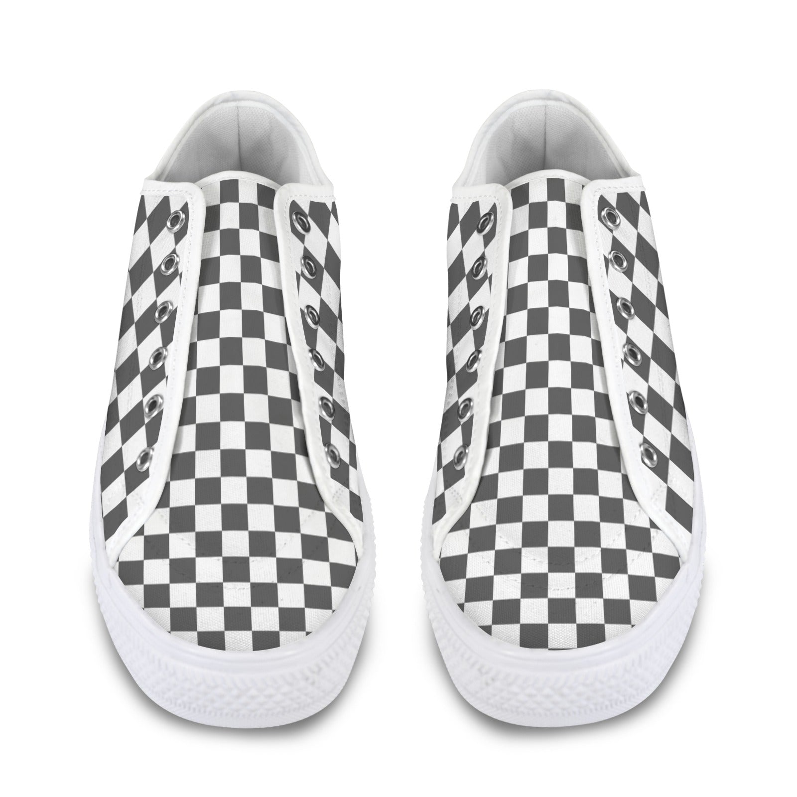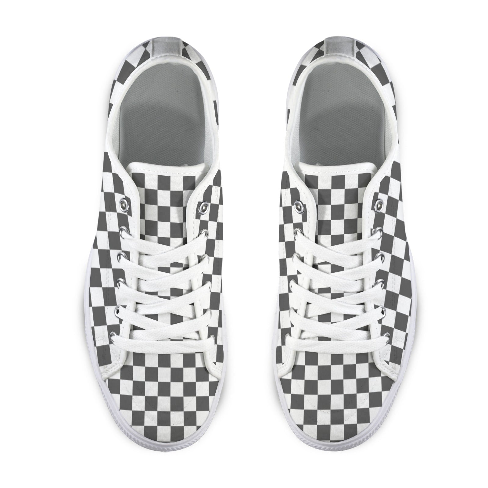 Dark Gray and White Checkerboard Low Top Women's Shoes