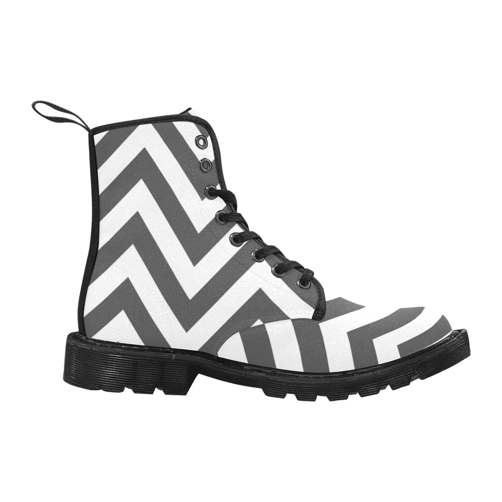 Step into style with our Dark Gray & White Zig Zag Men's Lace Up Canvas Boots, perfect for the modern man who loves to make a statement.