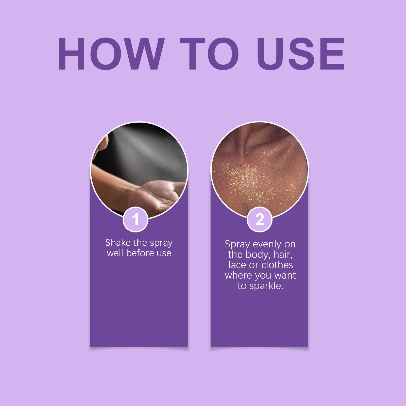 - Easy to Apply: Simply shake the bottle, and spray evenly on your body, hair, face, or clothes to achieve a dazzling effect.