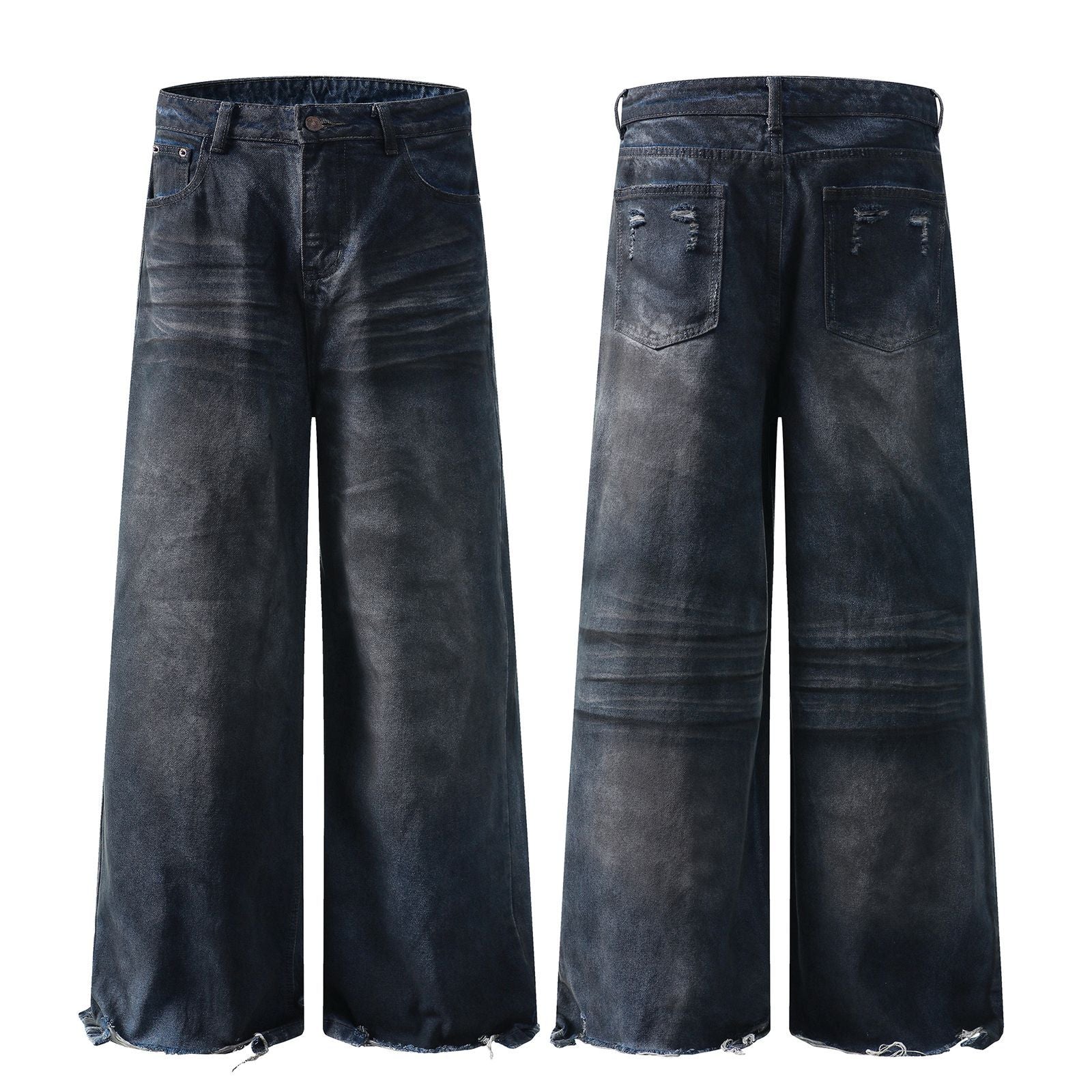 Denim Blue Harajuku Style Straight Wide Leg Trousers
