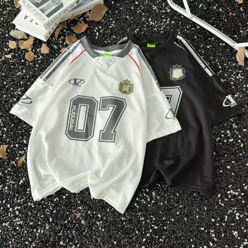 Unleash your inner artist with our Graffiti Printed Mesh Jersey T-Shirt! This statement piece is where comfort meets style, perfect for showcasing your unique flair inspired by Harajuku fashion.