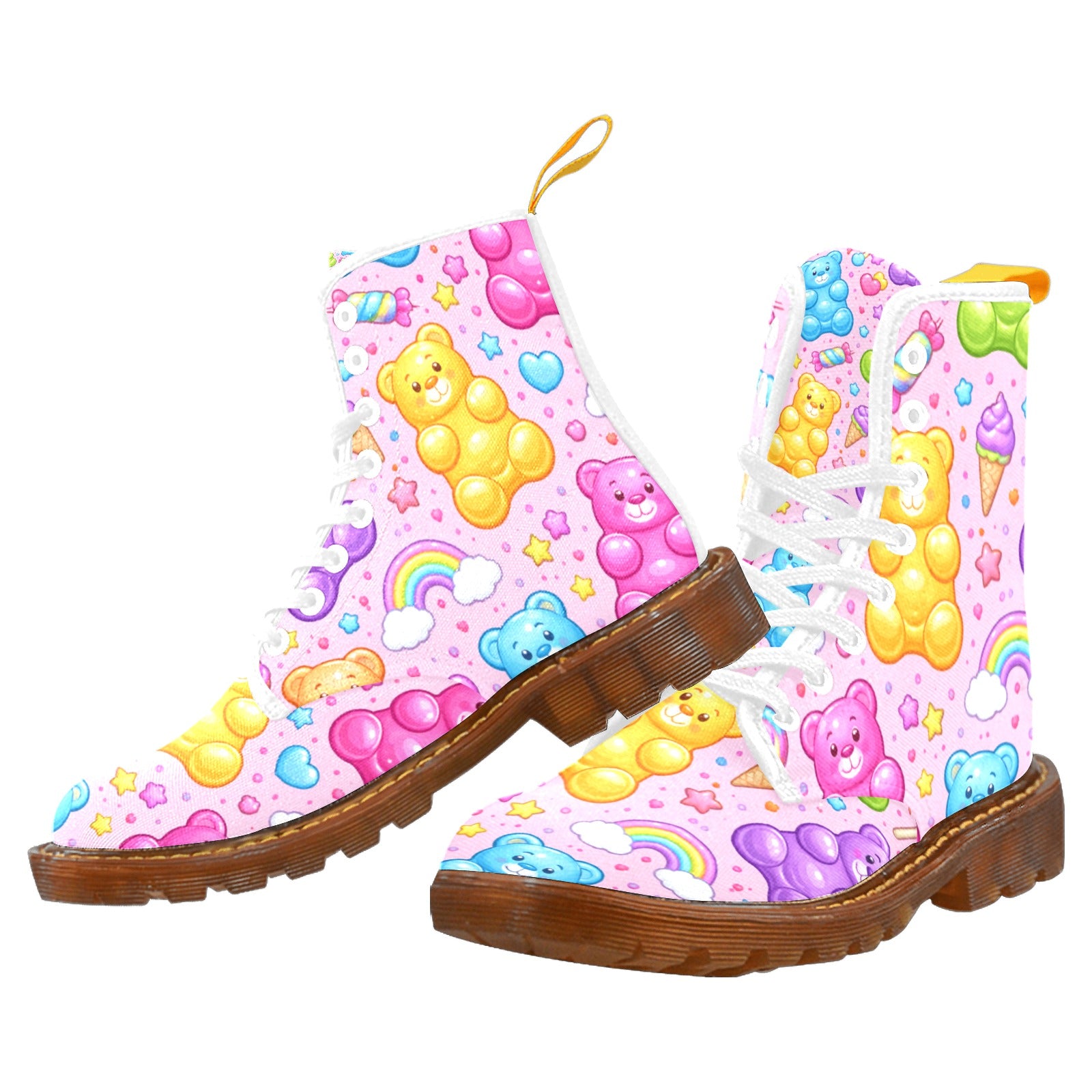 Gummy Bear and Rainbow Pattern Women's Lace Up Canvas Boots