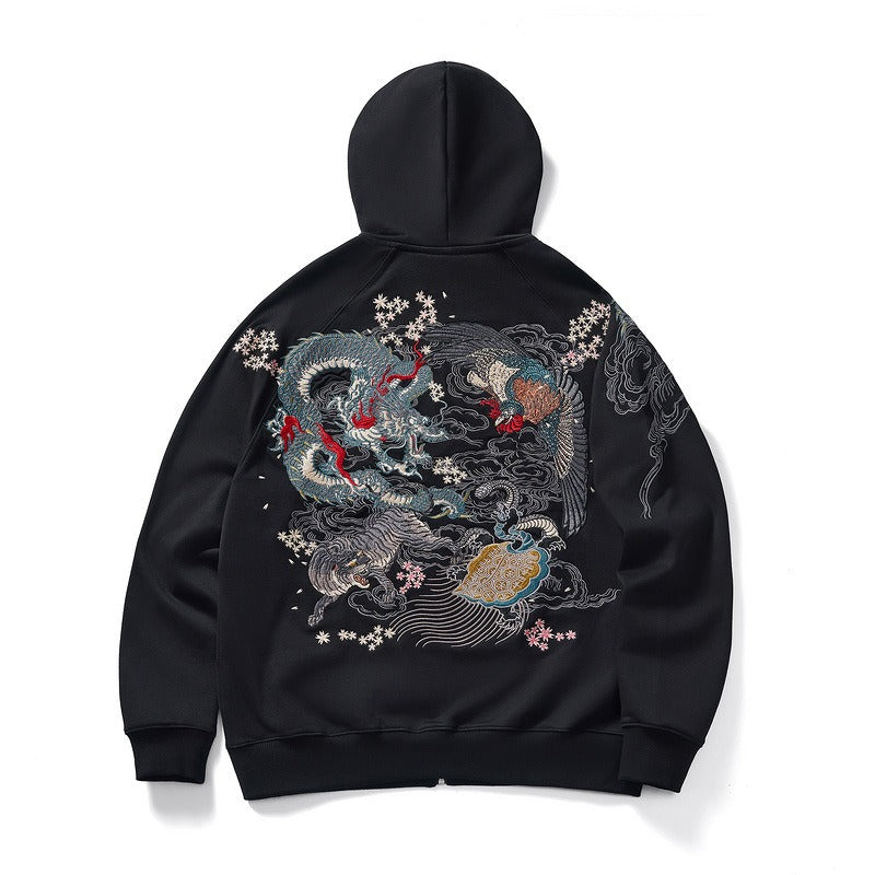 Harajuku Style Dragon and Phoenix Cardigan Sweatshirt