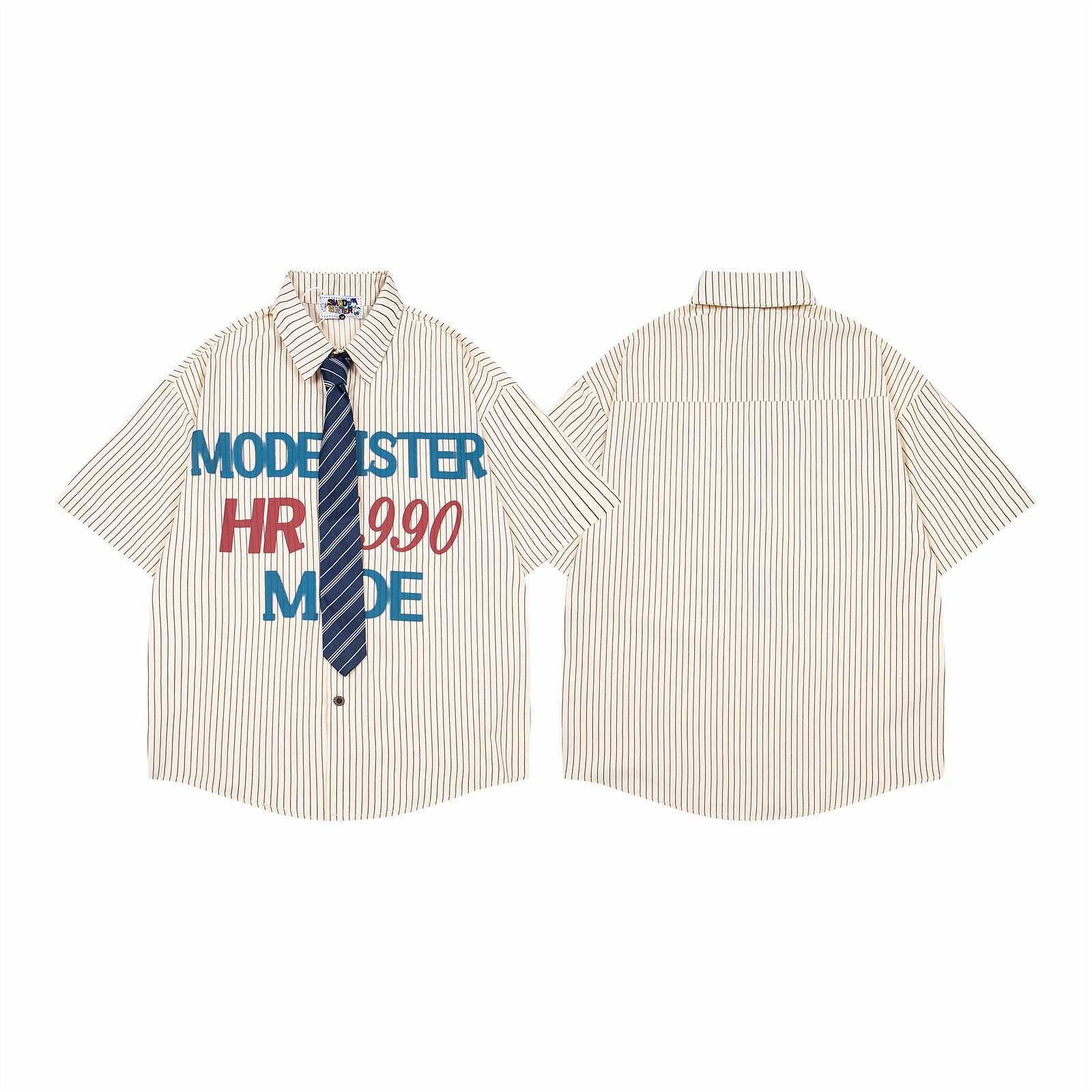 Embrace the vibrant energy of Harajuku fashion with our Retro Letter Print Stripe Collar Short Sleeve Shirt. This uniquely designed shirt combines a playful retro aesthetic with contemporary street style that is perfect for summer outings or casual gatherings. Crafted from high-quality cotton, this shirt promises both comfort and style, ensuring you stay cool and trendy all season long.