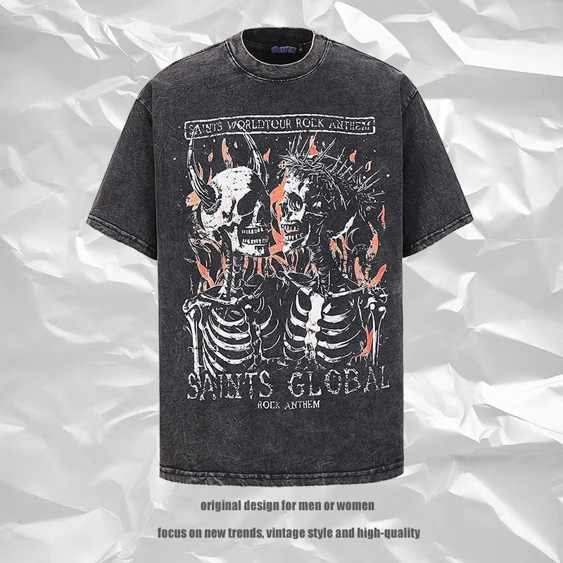 Harajuku Skull Print Pure Cotton Tee - Vintage Style