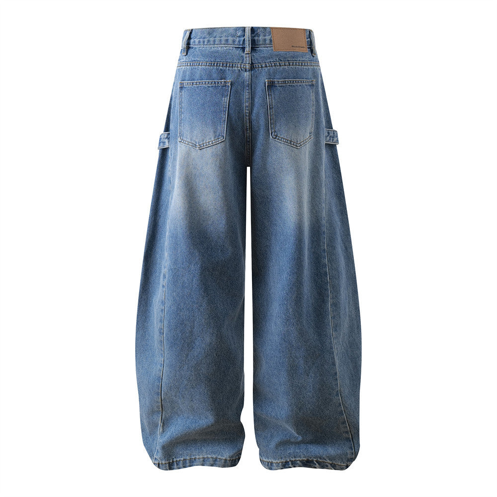 Harajuku Style Arc-Shaped Wide-Leg Denim Trousers