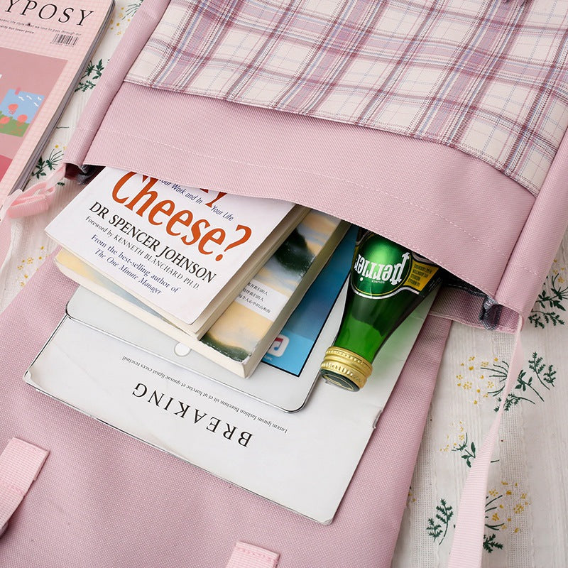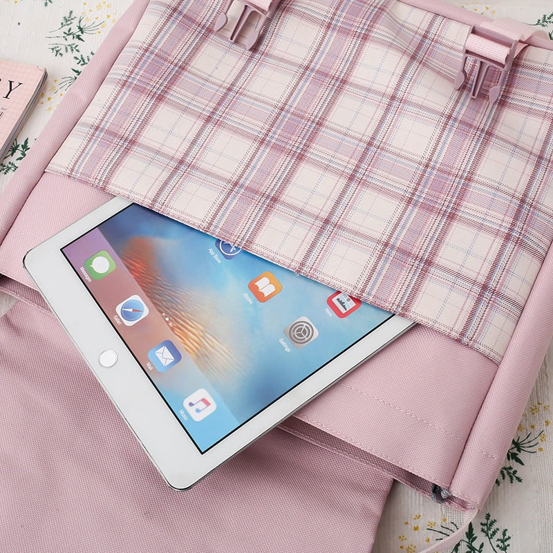 Harajuku Style Canvas Bag - Large Capacity Plaid Cloth Bag