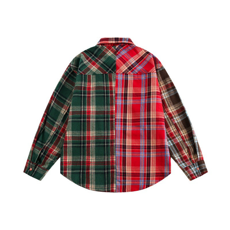 Harajuku Style Loose Plaid Patchwork Long Sleeve Shirt