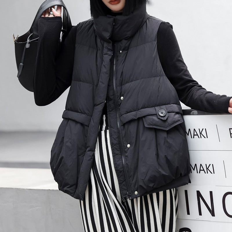 Harajuku Style Stand Collar Sleeveless White Duck Down Vest