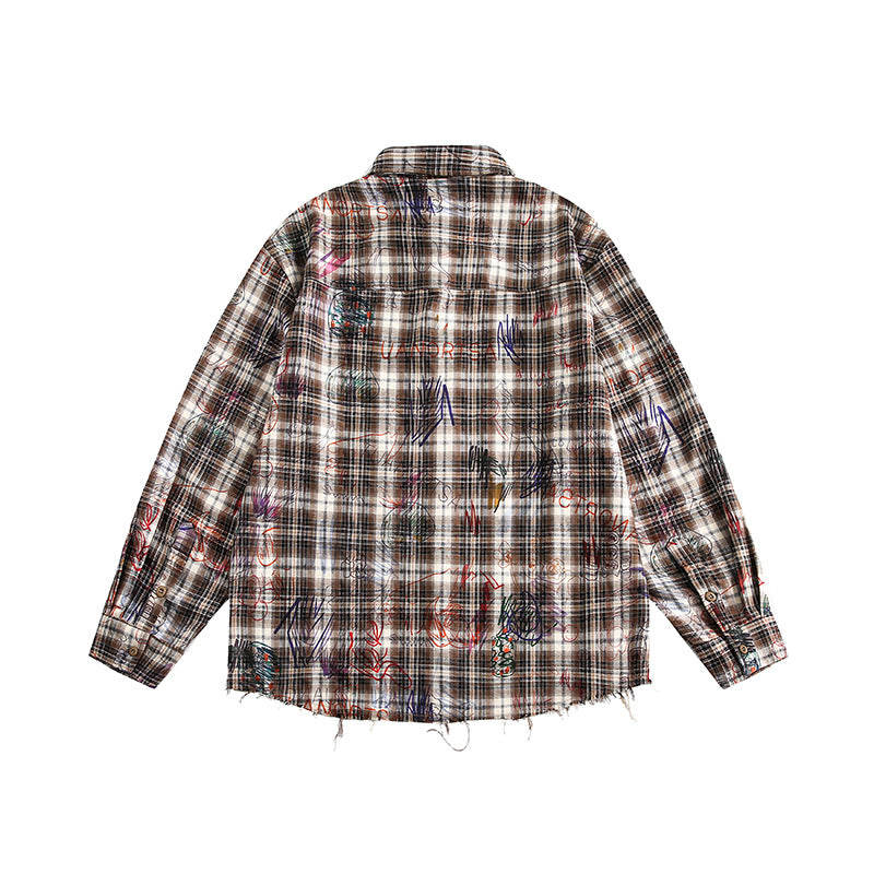 Step out in style with our Harajuku-inspired Watercolor Graffiti Plaid Long Sleeved Shirt. This playful piece merges the vibrant essence of Tokyo street fashion with a classic plaid design, making it a perfect addition to your wardrobe for casual outings or laid-back days.