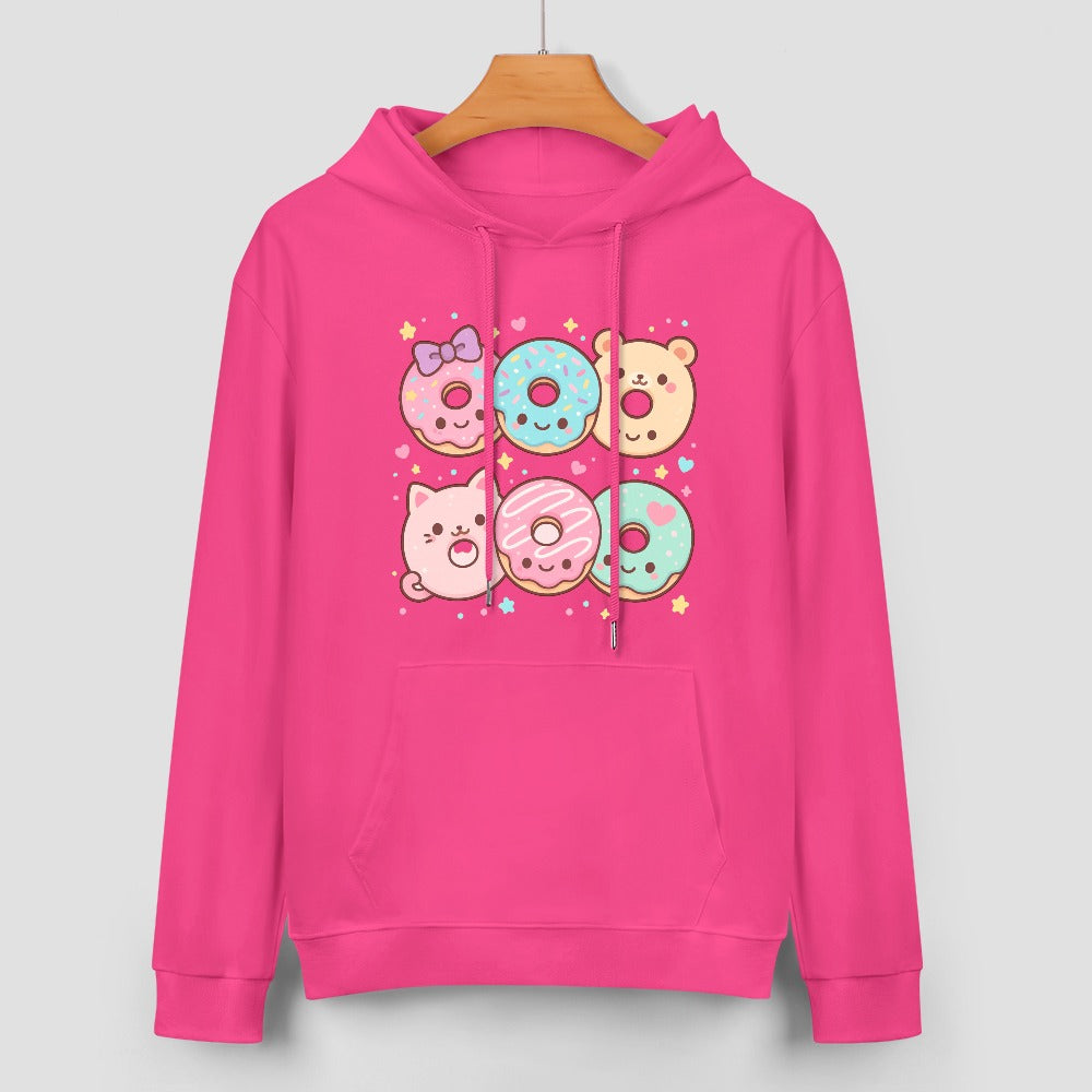 Kawaii Donuts Half Dozen Pure Cotton Hoodie - Hot Pink