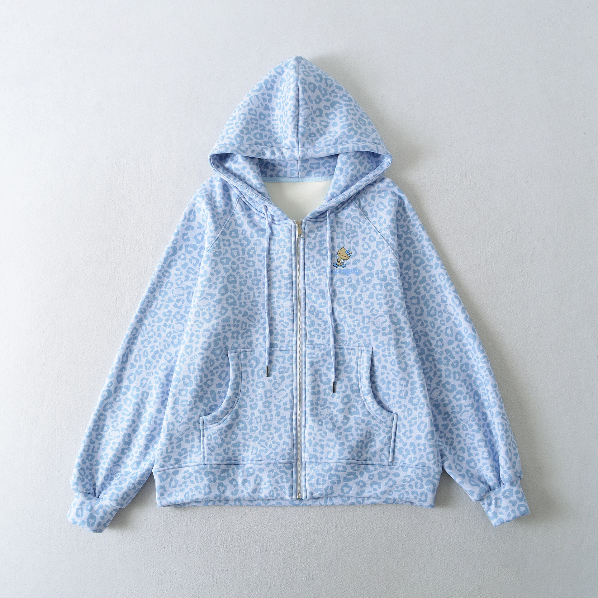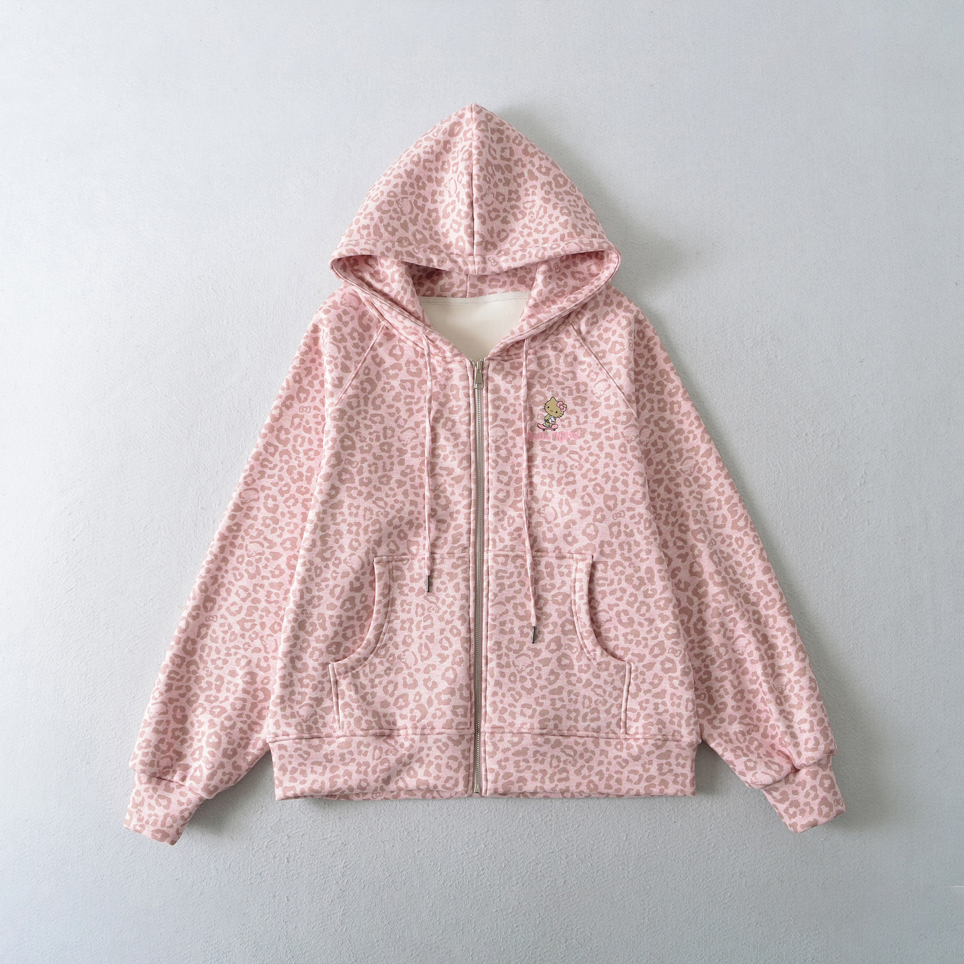 Join the ranks of Harajuku fashion enthusiasts and add this Leopard Print Kitten Print Zipper Hoodie Jacket to your collection today!