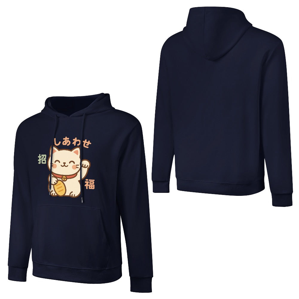 Lucky Cat Pure Cotton Hoodie - Navy Blue