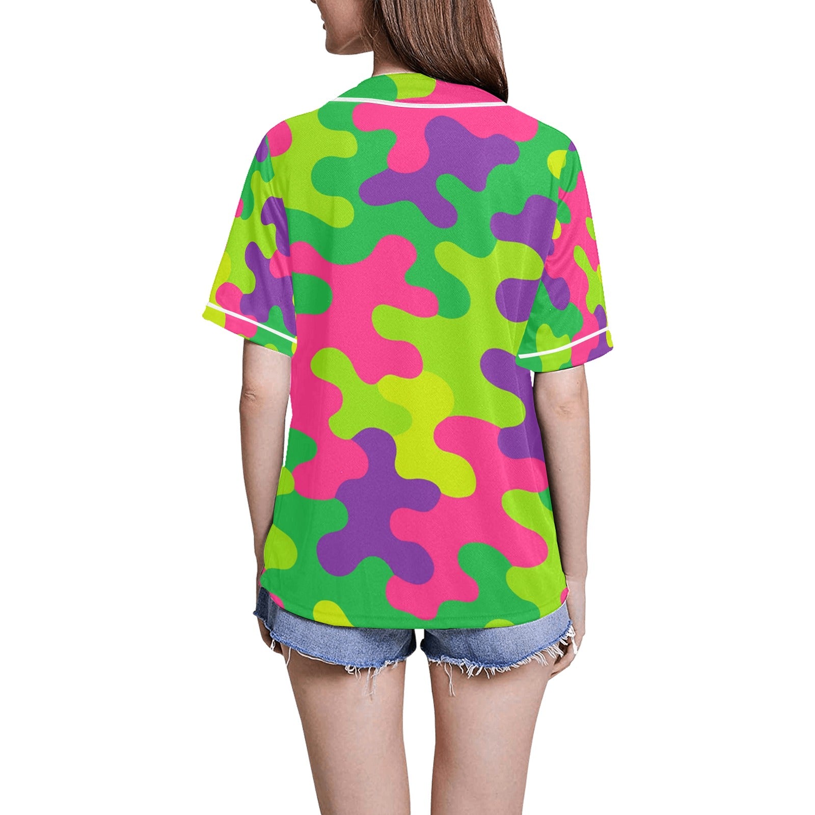 Neon Rainbow Camo Women's All Over Print Baseball Jersey