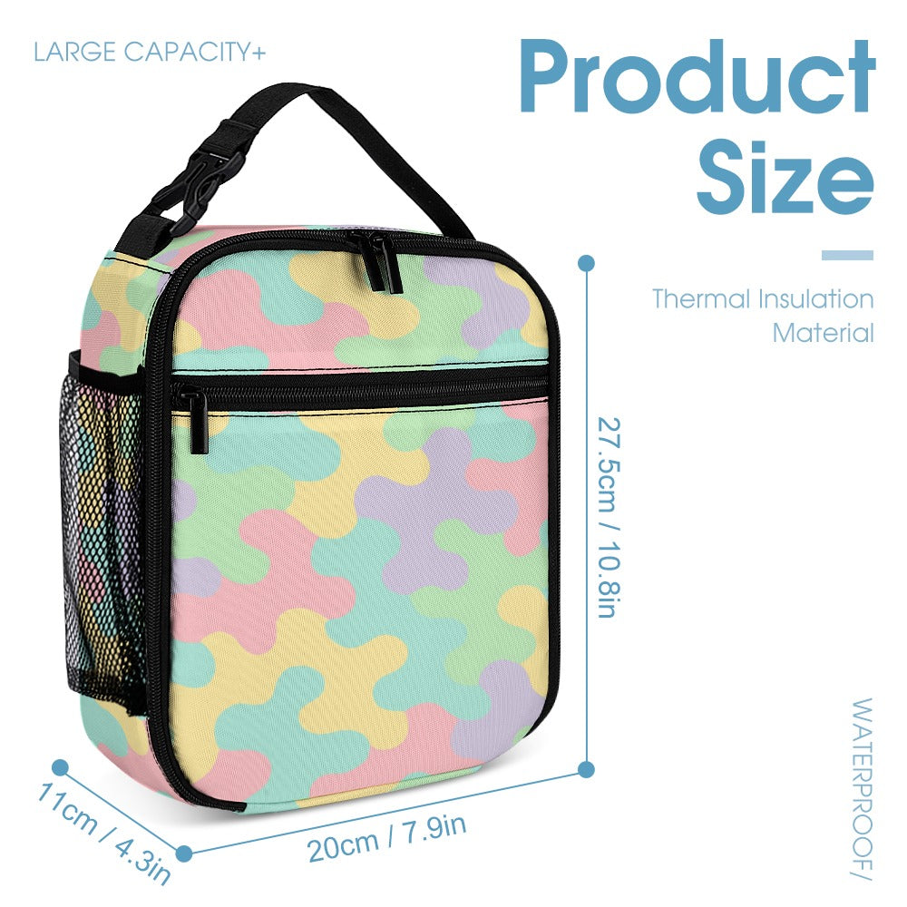 Introducing the Pastel Camo Three-Piece Backpack Bag Set, perfect for school or daily outings. This stylish set includes a schoolbag, lunch bag, and pencil case, all designed in a vibrant pastel camouflage pattern.
