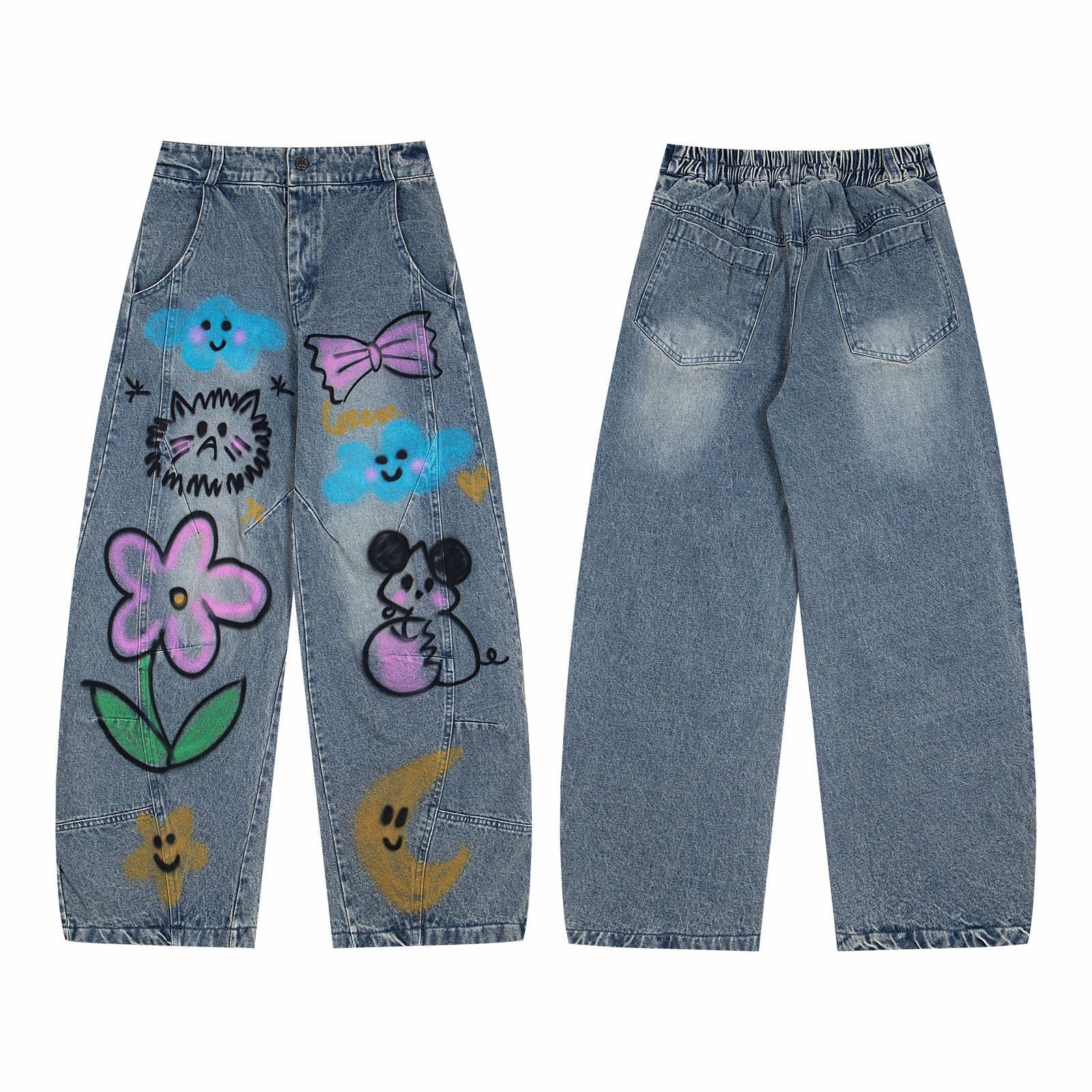 Step into the vibrant world of Harajuku fashion with our Playful Cartoon Graffiti Wide Leg Jeans! These eye-catching jeans are perfect for those looking to make a bold statement while staying comfortable and stylish.