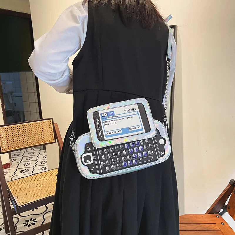 Step up your fashion game with our Playful Mobile Phone Shape Chain Crossbody Bag, a perfect blend of fun and functionality. Designed to turn heads, this bag is a must-have accessory for any Harajuku style enthusiast!