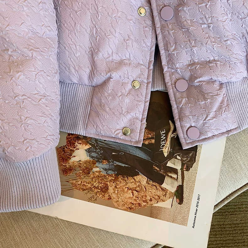 Step into the spotlight with our Playful Purple Thickened Baseball Jacket, designed for the bold and vibrant spirit of Harajuku fashion. This jacket is not just a piece of clothing; it's a statement that embodies the essence of Harajuku style with a playful twist. Perfect for winter, this trendy jacket will keep you warm while ensuring you stand out in any crowd.