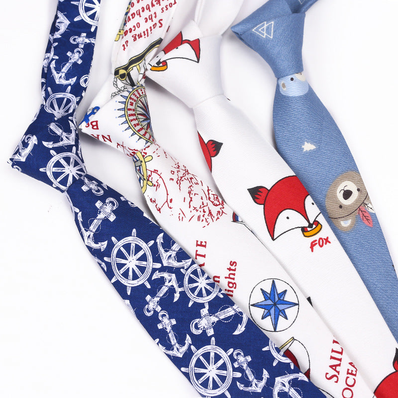 Printed Cartoon Cotton Neck Unisex Animal Pattern Tie