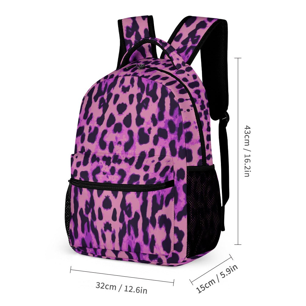 Purple Leopard Print Three-Piece Backpack Bag Set Combination