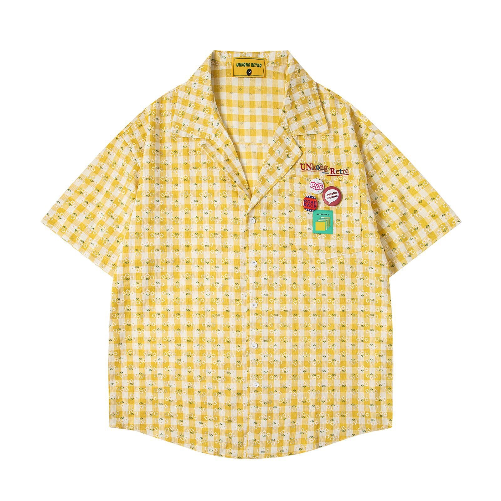 Embrace the playful spirit of Harajuku fashion with our Retro Badge Decorative Design Short Sleeve Shirt, crafted for both men and women. This eye-catching piece is perfect for anyone looking to add a unique flair to their casual wardrobe.