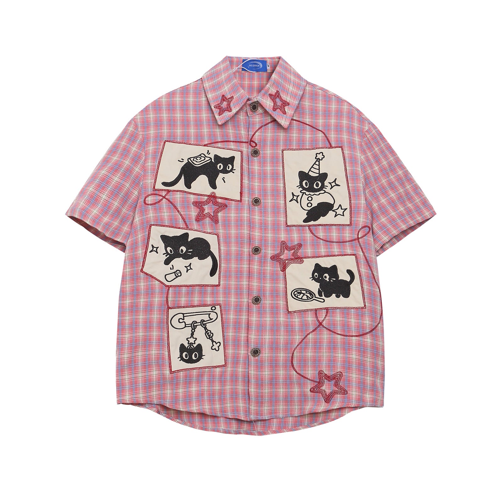 Introducing the Retro Cute Cat Applique Short Sleeve Shirt, a playful addition to your wardrobe that embodies the spirit of Harajuku fashion! This vibrant piece is designed for those who love to showcase their unique style while enjoying casual comfort.