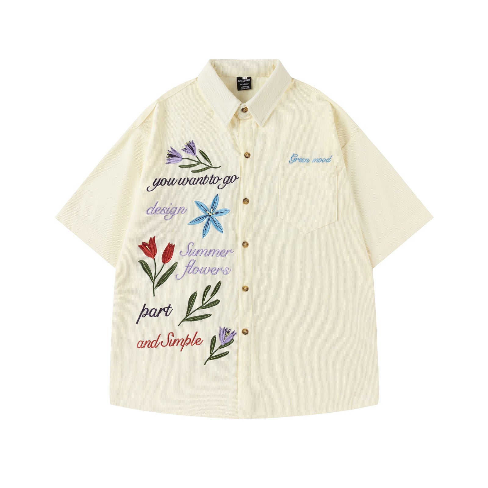 This Retro Floral Embroidery Corduroy Short Sleeve Shirt is your gateway to vintage charm with a splash of modern flair. Perfectly suited for both men and women, this shirt is a versatile staple for any Harajuku-style wardrobe.