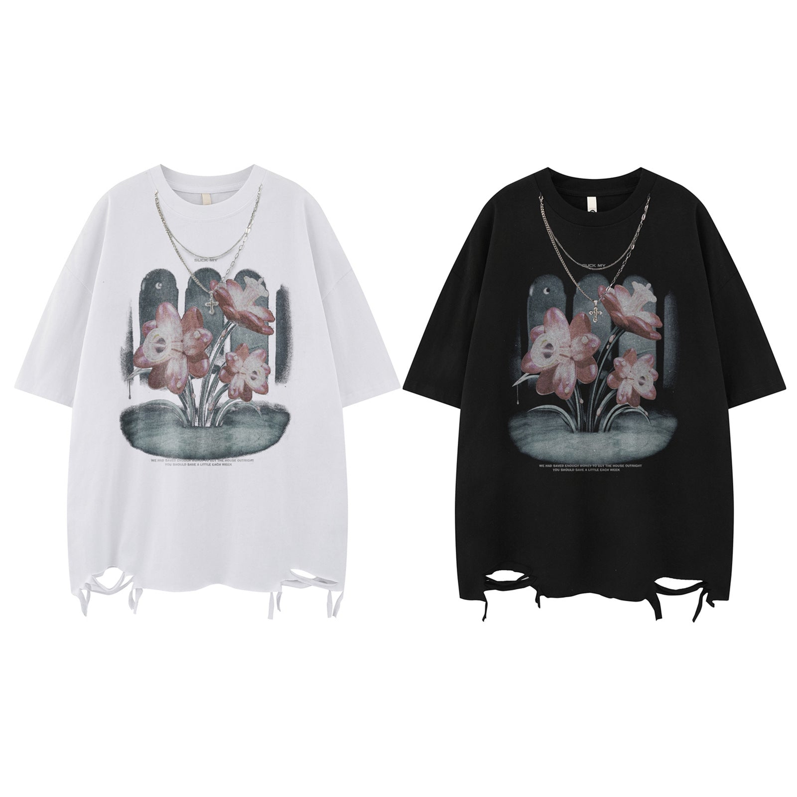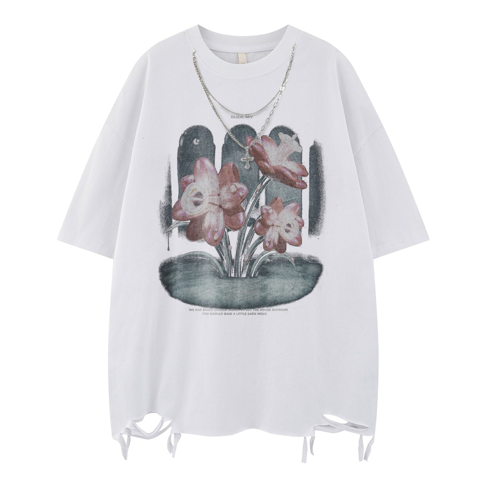 Whether you're exploring the streets of Tokyo or just hanging out at a café, this Retro Floral Print Ripped Short Sleeve Tee will keep you looking fresh and fashionable. Embrace the essence of Harajuku street fashion and showcase your unique style!