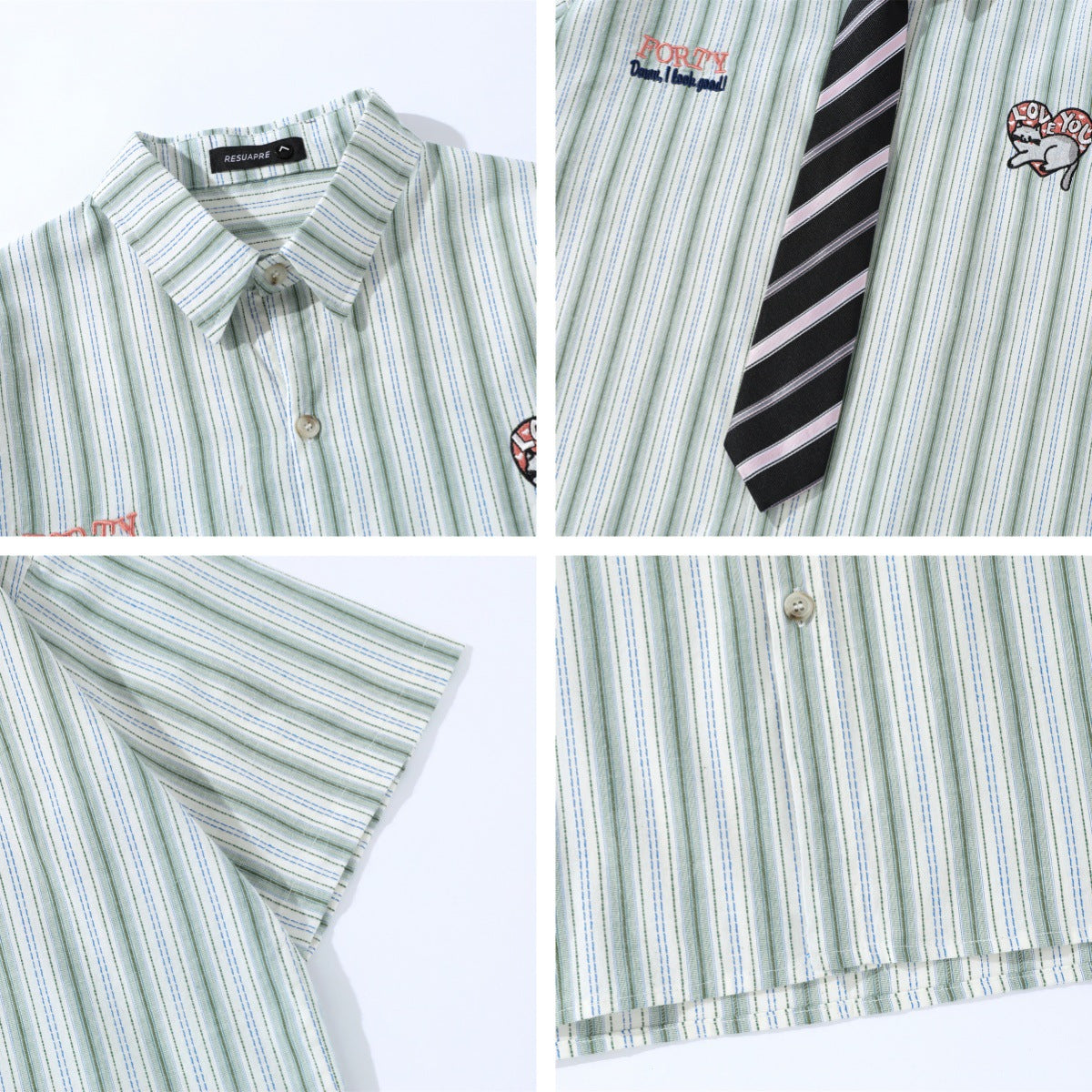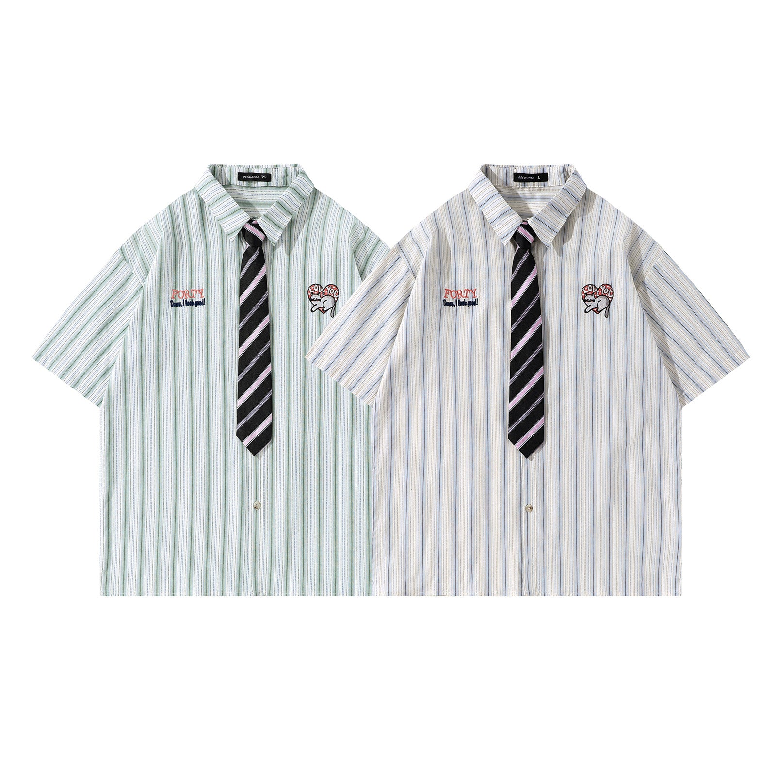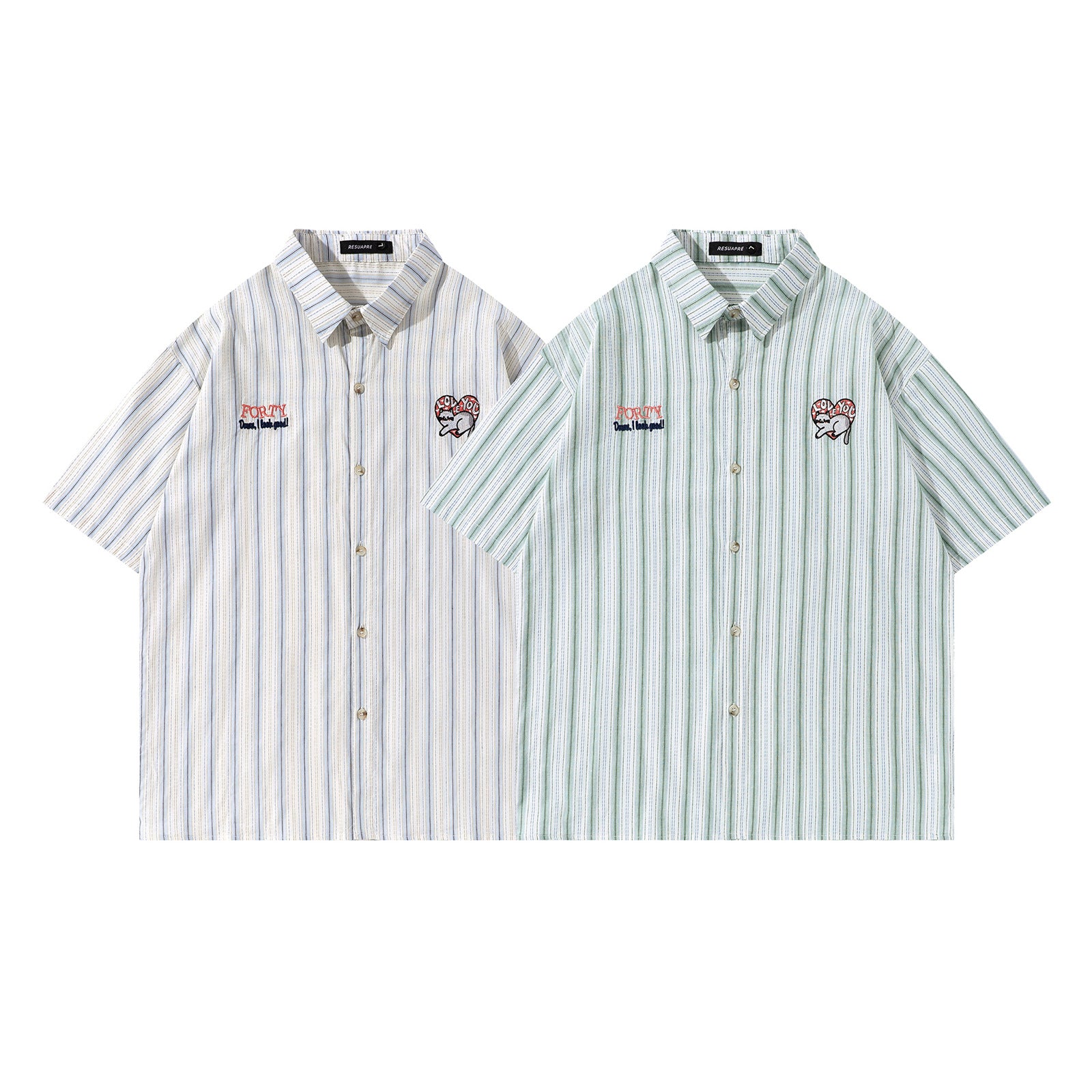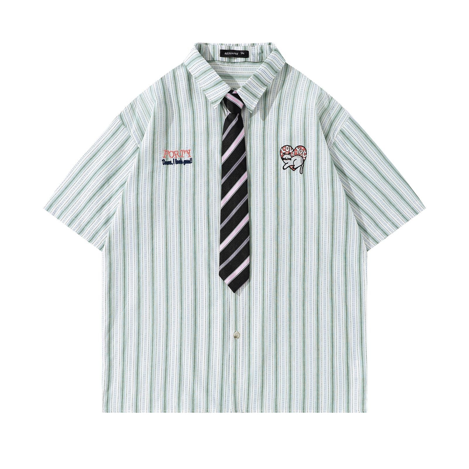 Embrace the playful essence of Harajuku fashion with our Retro Heart Cat Embroidery Collar Short Sleeve Shirt. This unisex piece combines bold, street-style aesthetics with a loose, casual fit, perfect for summer outings.