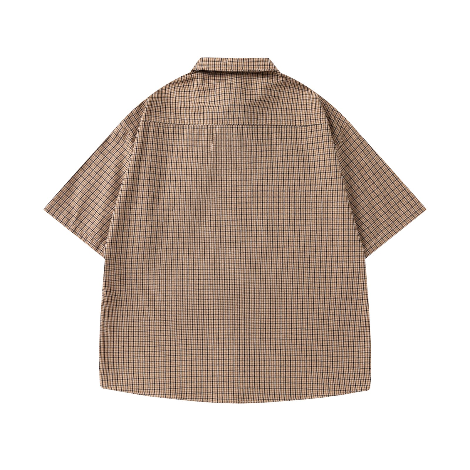 Retro Plaid Tie Collar Short Sleeve Shirt - Unisex