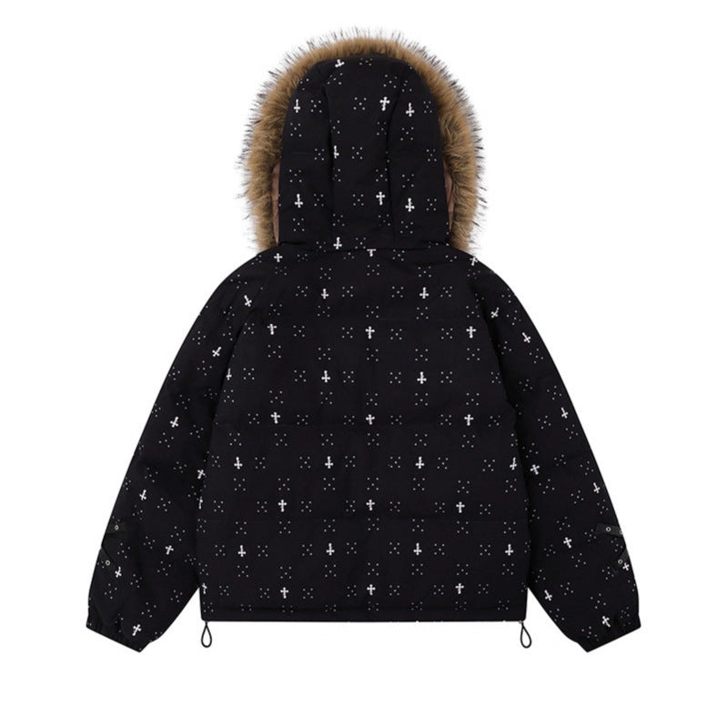 Spiderweb Cotton Coat - Detachable Hooded Fur Collar