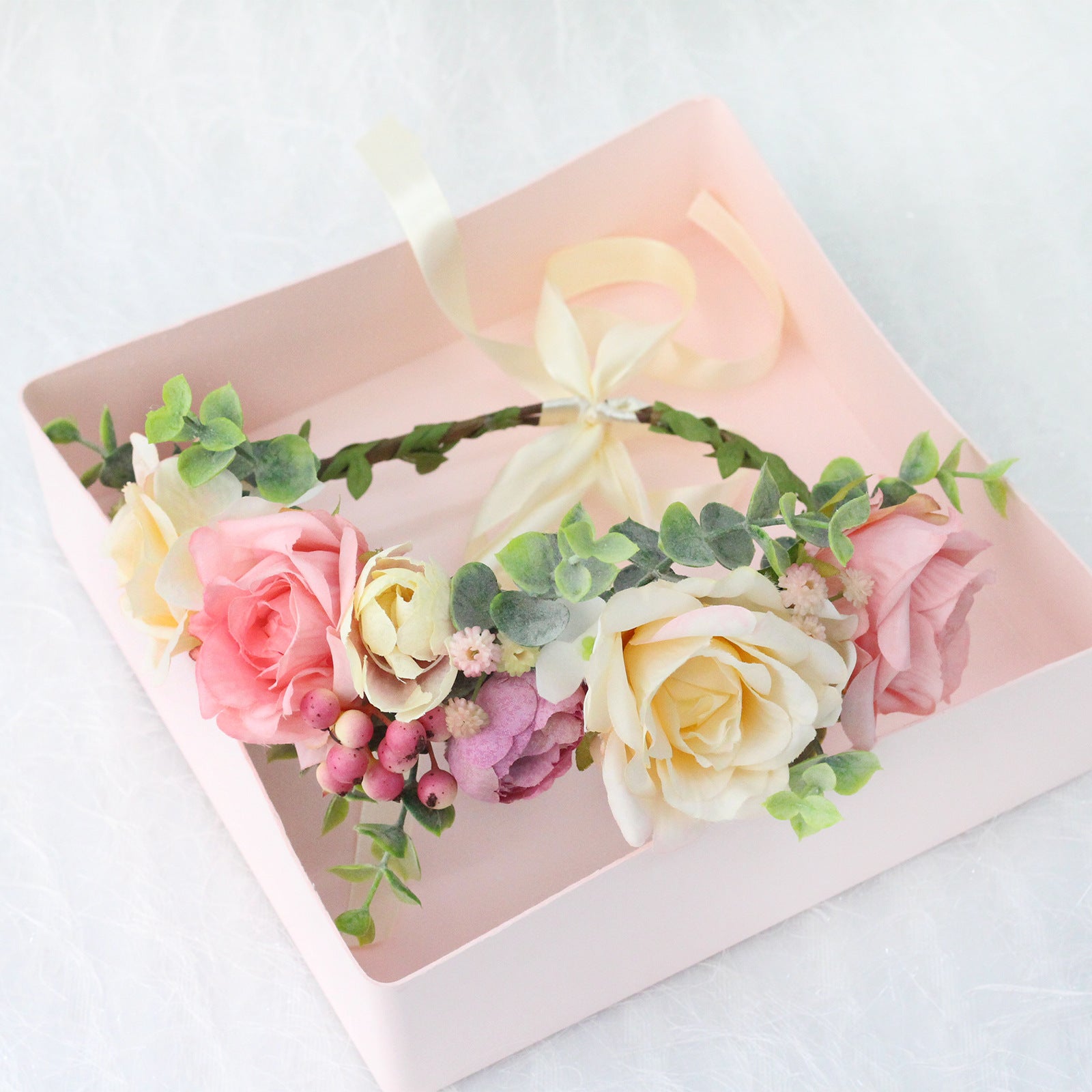 Embrace the beauty of nature with our Spring and Summer Flower Garland Headband, perfect for any bride or travel photography enthusiast! This enchanting headwear features a delicate arrangement of simulation roses and water grass, bringing a whimsical touch to your outfit.