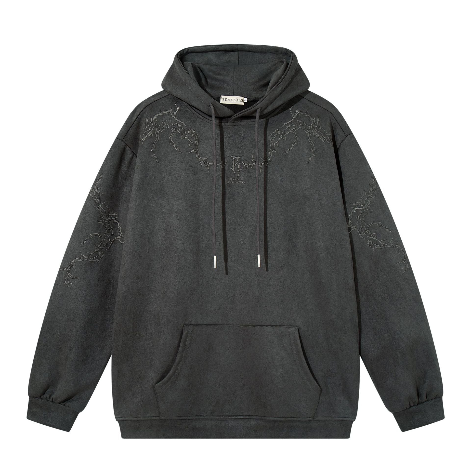 This Thorn Embroidered Suede Hoodie combines comfort and style, perfect for your casual outings. Made from high-quality polyester with a synthetic blend, this hoodie offers a loose fit that provides freedom of movement while keeping you warm.