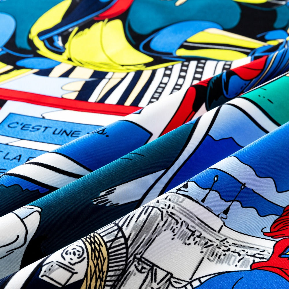 Twill Square Scarf with Sports Picture Print