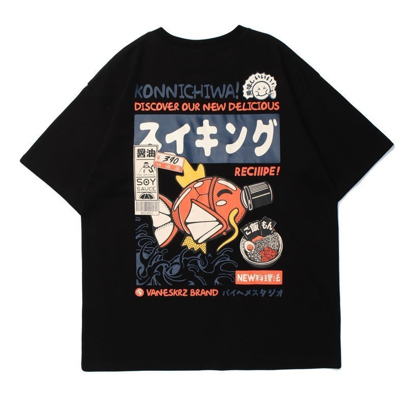 Embrace the playful essence of Harajuku fashion with our Vintage Japan Kanji Cartoon Graphic Tee, a must-have for anyone looking to add a splash of fun to their wardrobe. This shirt combines traditional Japanese aesthetics with a modern twist, perfect for street-style enthusiasts.
