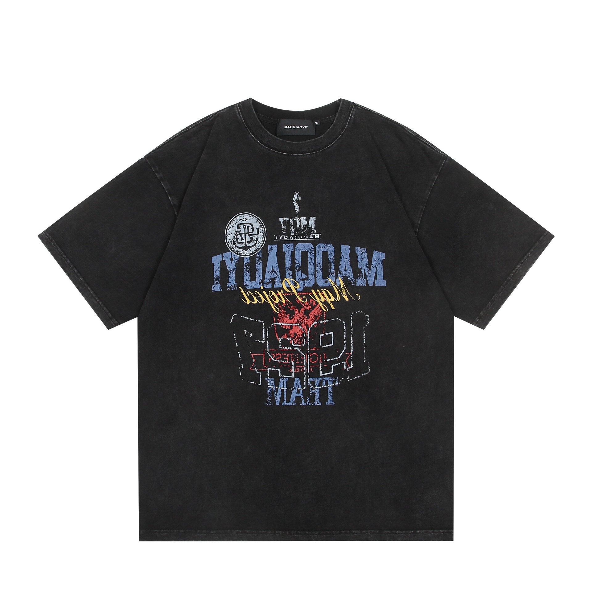 Vintage Washed Letter Print Loose Fit Short Sleeve Tee
