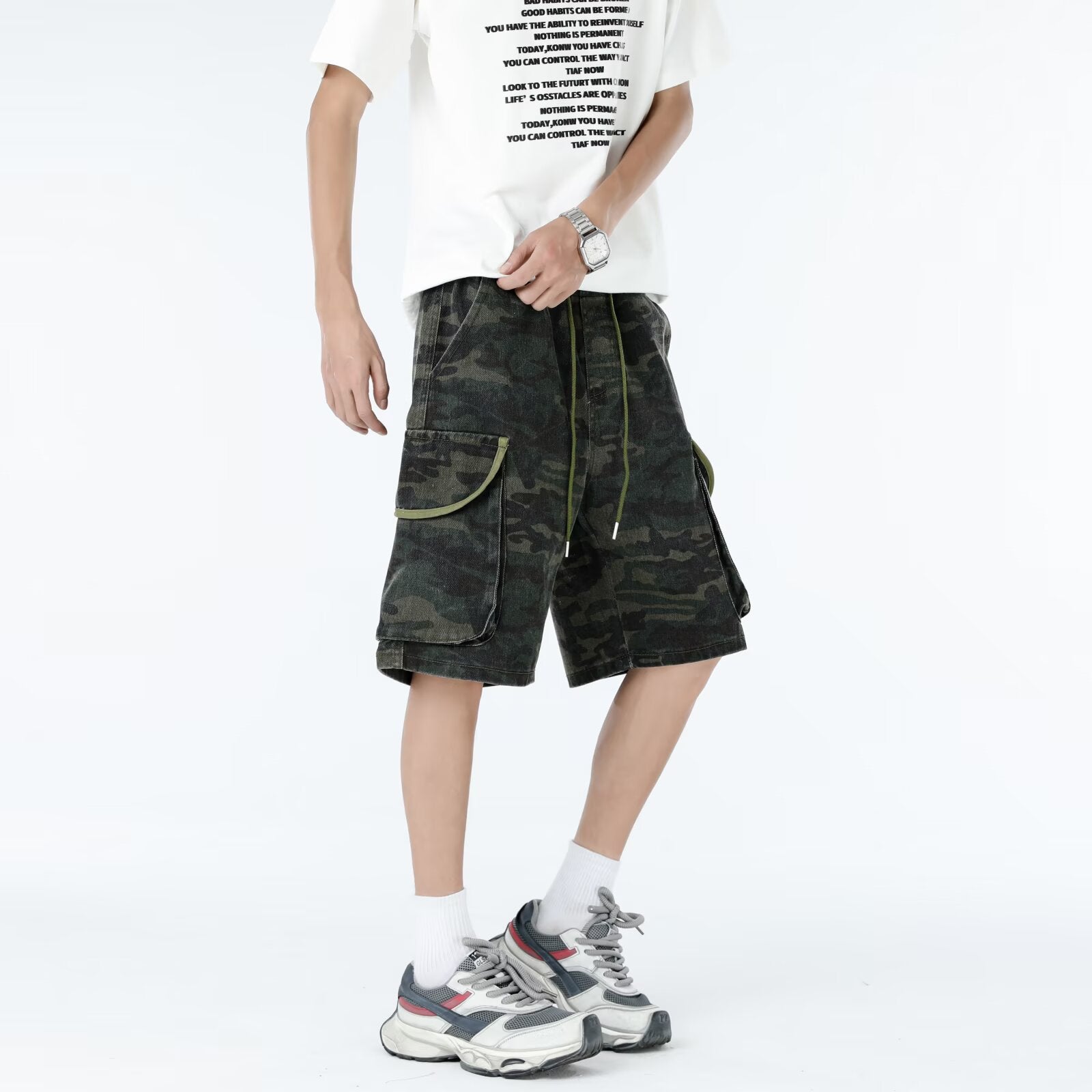 Step into summer with our Men's Washed Camouflage Denim Shorts, designed for style and functionality. Perfectly blending Harajuku fashion vibes with practicality, these shorts are ideal for the trendy man looking to elevate his wardrobe.