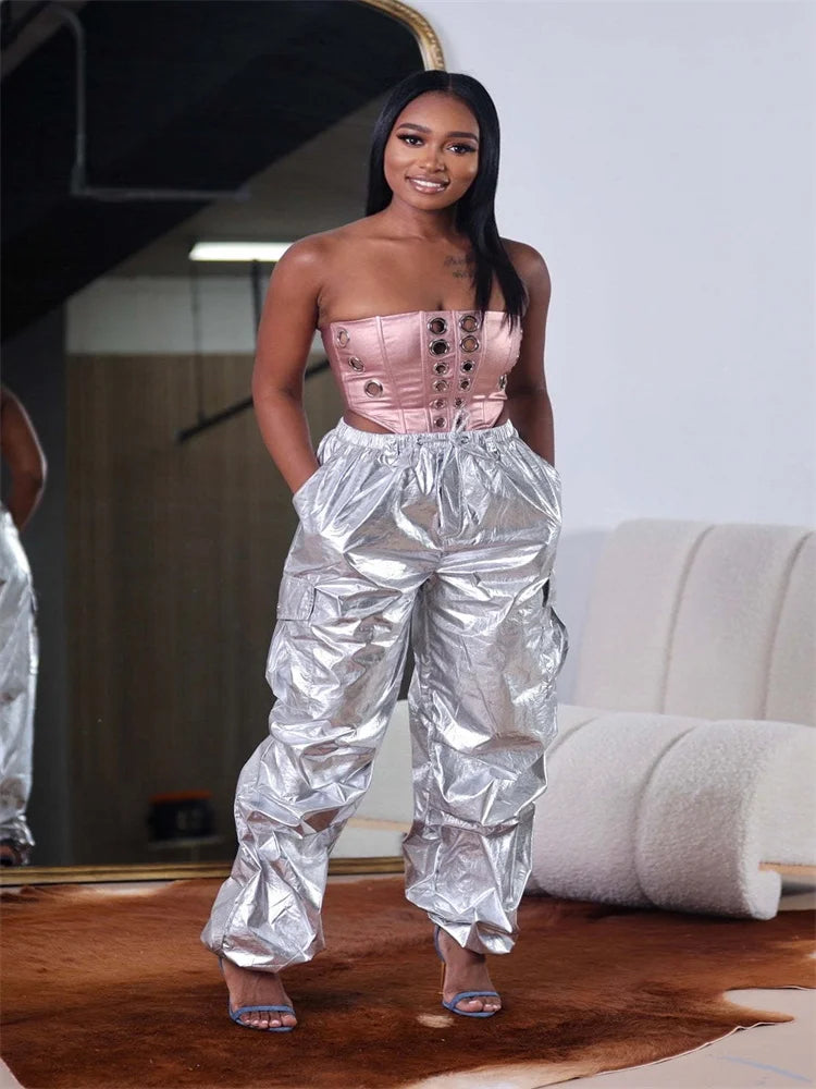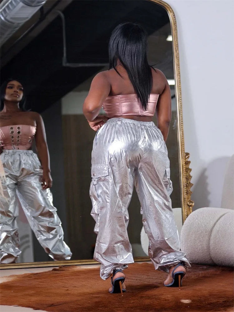 Weird Puss Bright Silk Cargo Pants - Harajuku Style